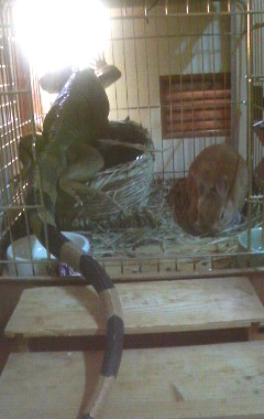 なわばりを守ろうとケージに飛びこむ豆。